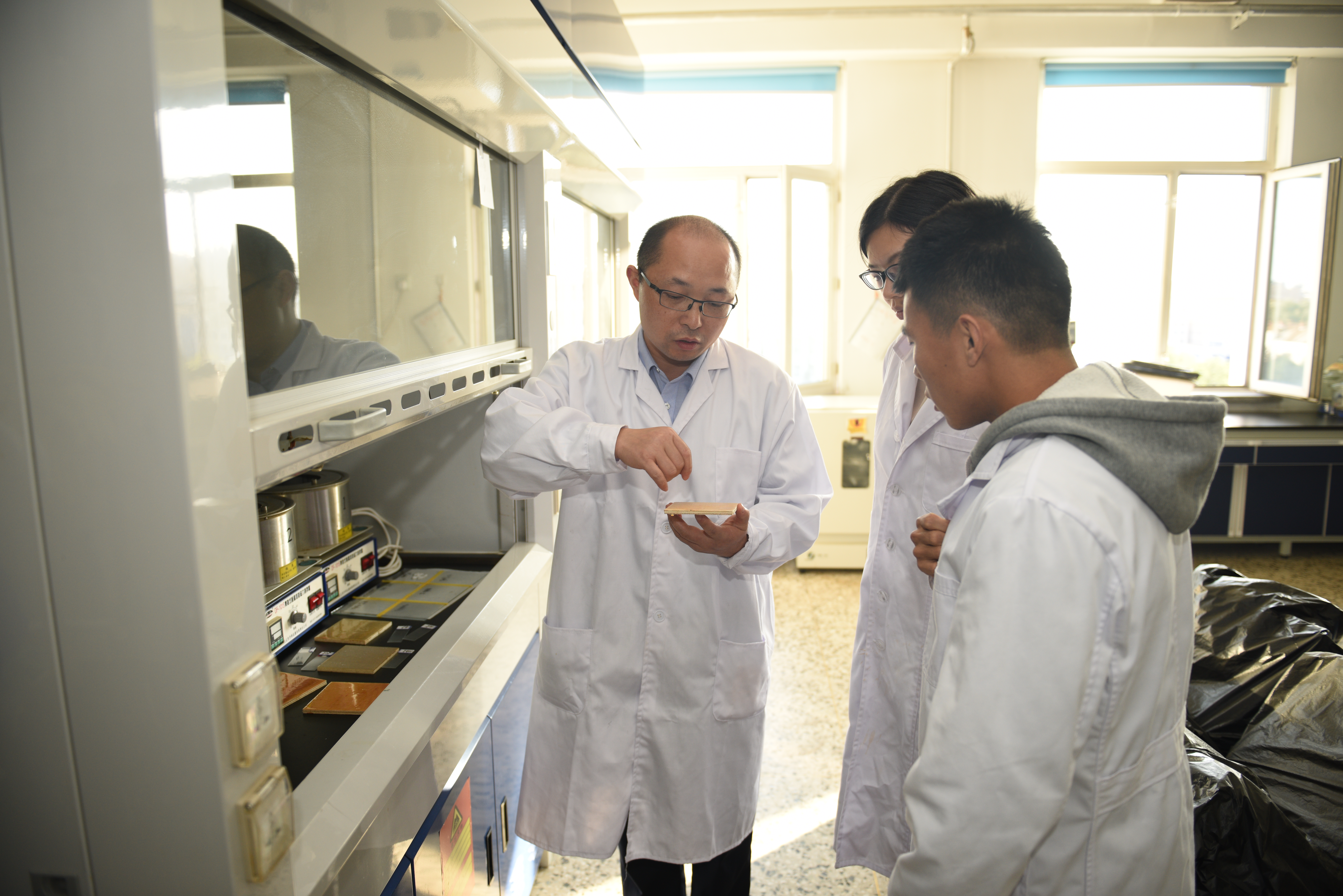 东北林业大学谢延军教授在指导团队做实验