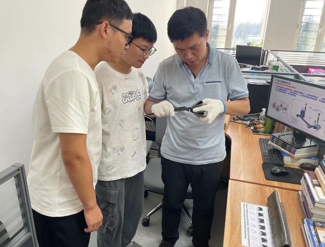 张鑫龙将企业上述的工程问题转化为科学问题摆到了学生们面前。在实际需求的牵引下,学生们将模具设计、成形工艺等问题简化为若干个力学平衡问题。借助原来的基础知识,再加上利用学校电子图书馆等互联网资源获取的新知识,学生们专业知识体系变得越来越完善。最终,学生们通过力学分析与有限元仿真给出了优化方案,最终确定了模具设计参数。企业采纳了设计参数,目前已正式投产。