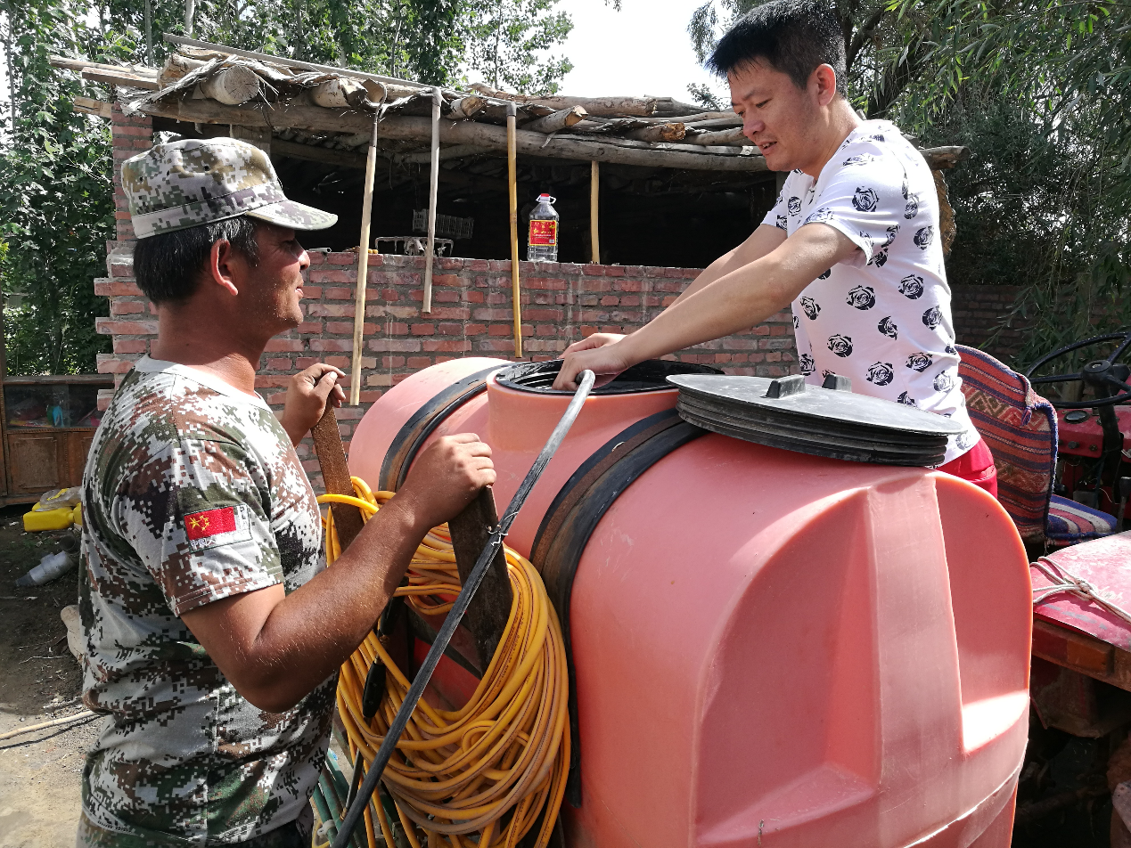 2018年5月25日,马国勇帮助结亲对象灌水浇棉花地