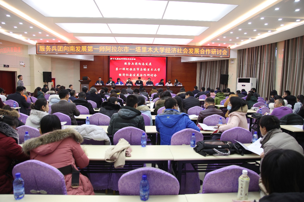2018年1月,马国勇协调组织第一师阿拉尔市、塔里木大学经济社会发展研讨会