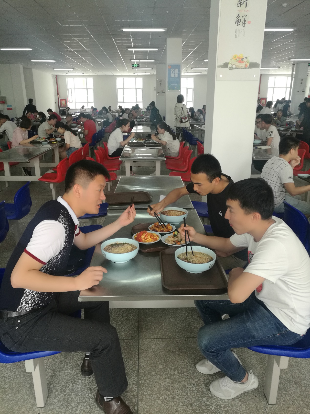 马国勇在食堂与学生交流