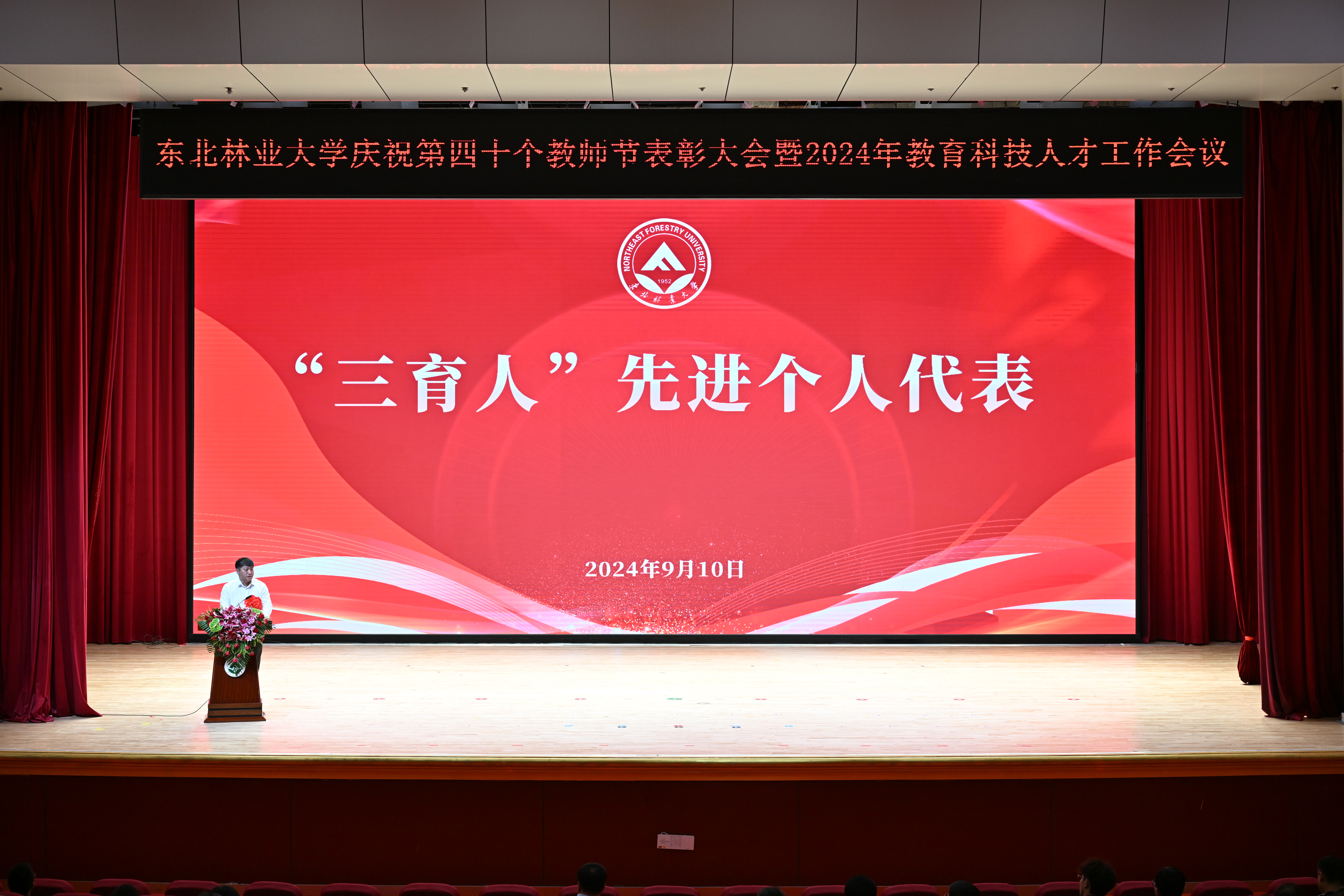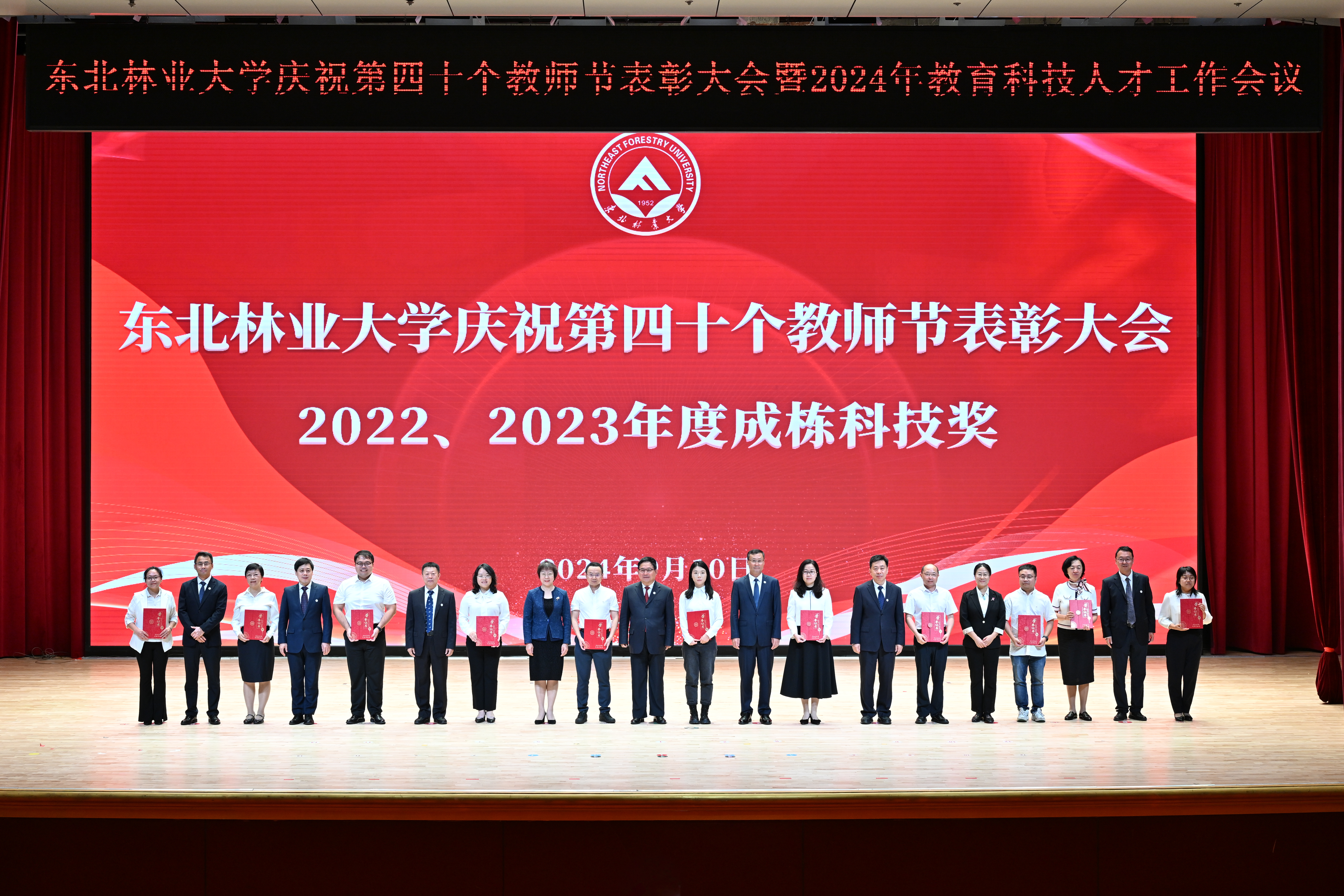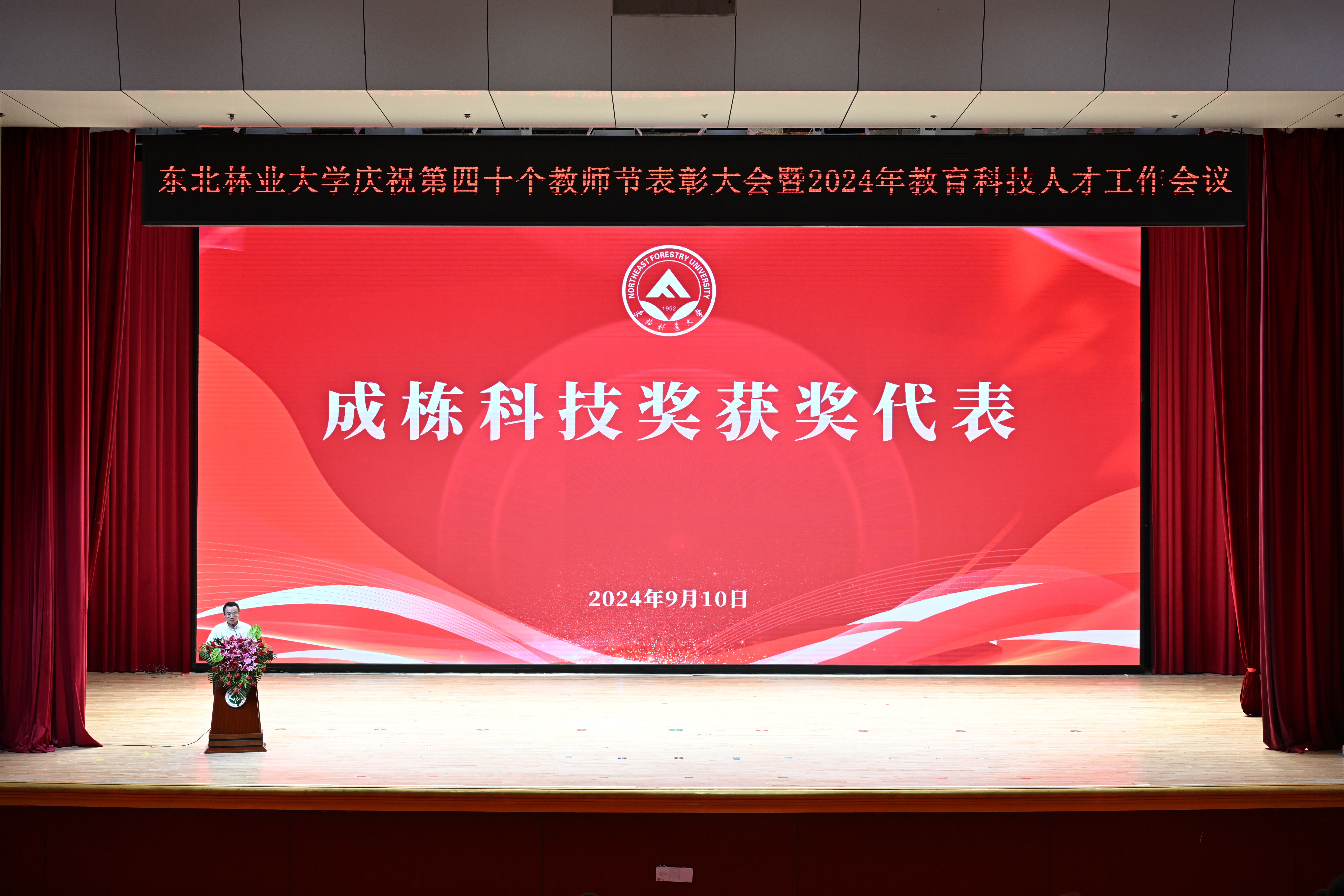 学校党委常委、副校长刘守新宣读《东北林业大学关于2022、2023年度成栋科技奖的评选结果》。学校党委常委、副校长李明泽宣读《东北林业大学关于2022、2023年度成栋伯乐奖的评选结果》。学校党委副书记、纪委书记宋吉红宣读《中共东北林业大学委员会关于表彰2022—2024年度“三育人”先进个人的决定》。
