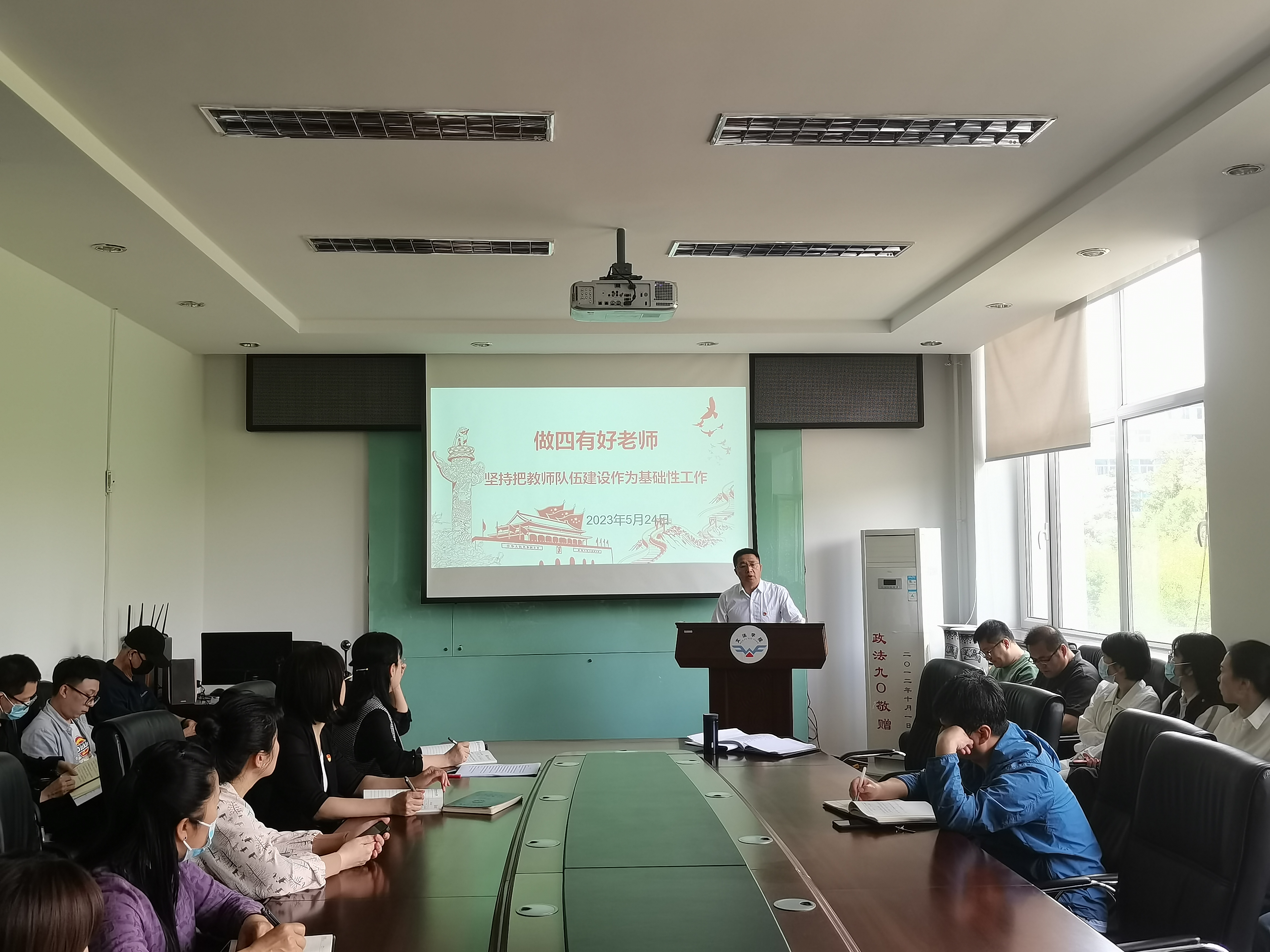 为深入学习贯彻党的二十大精神和习近平总书记关于教育的重要论述,牢记为党育人、为国育才使命担当,5月24日下午,文法学院党委书记侯彦杰作了题为《做“四有”好老师——坚持把教师队伍建设作为基础性工作》的辅导报告,带领全员教职工深入学习习近平总书记关于教育的重要论述。