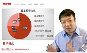 培训围绕在线教学课程的考核涵义、考核方式、考核工具、考核组织、成绩设置和成绩分析六个方面展开。余老师认为,课程考核目标应与一流课程的建设目标相对应,通过多元化的考核方式,及时了解学习者的学习状态、学习效果,达到形成性评价与结果性评价有机融合,做到线上与线下教学的实质等效。同时,余老师通过大量的调研数据、详实的案例、真切的教学实践感悟,全面阐释了在线教学课程考核的金课建设标准。直播期间,讨论区不断收到老师们的在线提问,余老师与大家积极互动并耐心进行了解答。老师们纷纷表示,培训非常及时,培训内容也具有较强的指导性和可操作性。最后,余老师还分享了相关资源的联系方式,方便老师后续交流探讨。