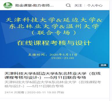 5月11日晚,我校联合延边大学、天津科技大学、温州大学特邀上海交通大学余建波教授做“在线教学课程考核设计与实践”专题培训。活动得到校内外教师广泛响应,两千两百余名教师通过腾讯助金课堂参加了学习。