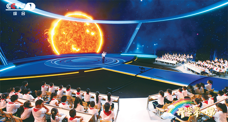2023年《开学第一课》以“强国复兴有我”为主题,从传统文化、文明探源、生态文明、乡村振兴、国防教育、科技创新等多个方面,全景展示中国式现代化的万千气象。图为中国科学院高能物理研究所研究员、“拉索”(LHAASO)首席科学家曹臻在向同学们介绍世界上海拔最高、规模最大的宇宙射线观测装置“拉索”的前世今生。 教育部供图