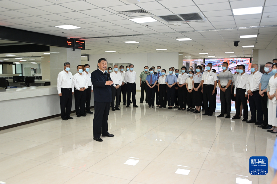 7月12日至15日,中共中央总书记、国家主席、中央军委主席习近平在新疆考察。这是14日,习近平在吐鲁番市高昌区亚尔镇新城片区新城西门村党群服务中心警务室考察。新华社记者 燕雁 摄