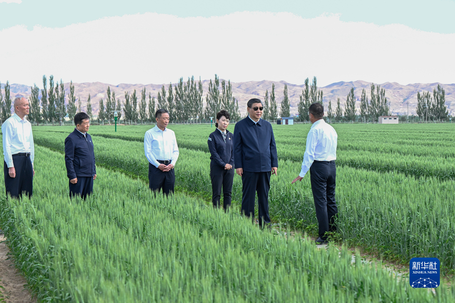 6月5日至6日,中共中央总书记、国家主席、中央军委主席习近平在内蒙古巴彦淖尔考察,并主持召开加强荒漠化综合防治和推进“三北”等重点生态工程建设座谈会。这是5日下午,习近平在位于乌梁素海南岸的现代农业示范园区考察。新华社记者 申宏 摄